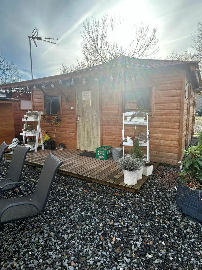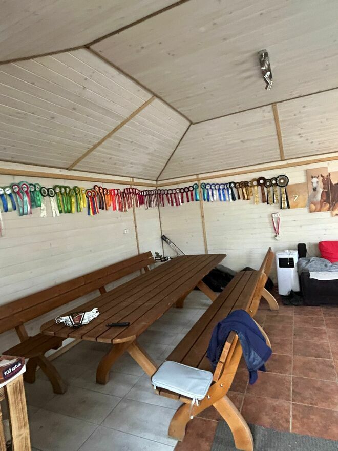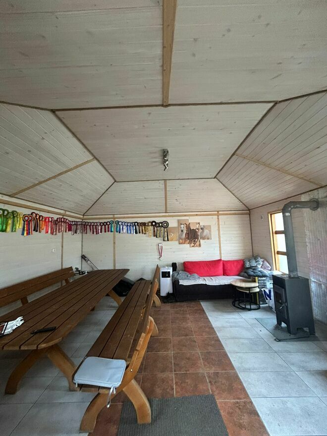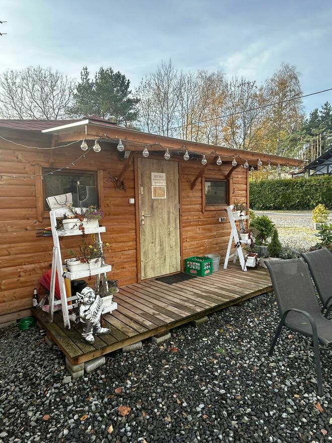 Drewniany domek wolnostojący o wymiarach 5 metrów x 5 metrów, w pełni ocieplony od środka i przystosowany do użytkowania przez cały rok. Domek posiada ocieploną podłogę. Używany, ale w bardzo dobrym stanie.Kolor domku od zewnątrz: drewnochron impregnat express tik od wewnątrz biały.